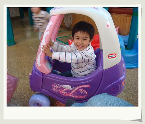 這個角落有一組洗車器材還有一組加油站(薇薇左後方那一個就是小小加油站),這一區是薇薇很愛玩的一區,這一天來這裡玩,薇薇又開心的幫大家洗車,可認真的勒!