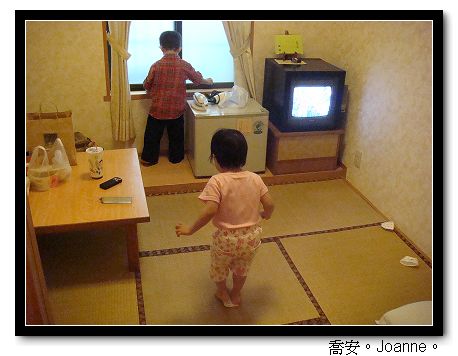 國際大旅社的房間有兩種,一種就是一般的房間形式,另一種就是榻榻米式的房間,我們都會特別指定要榻榻米式的房間,這樣就不用擔心小朋友在床上跳來跳去掉下來。