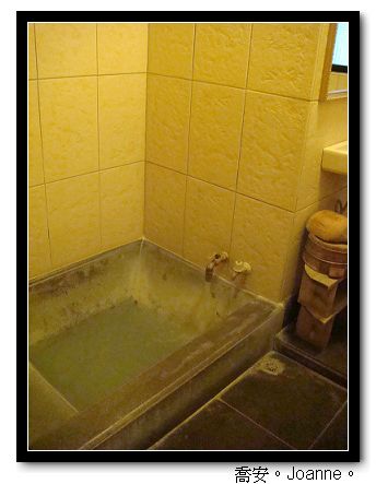 這一次泡湯的這個房間的浴室應該是後來有整修過,算是裡面狀態很不錯的浴室了,浴缸是用石板砌成的,牆壁的壁磚也是新的。